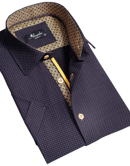 Black and Gold Mens Short Sleeve Button up Shirts - Tailored Slim Fit Cotton Dress Shirts