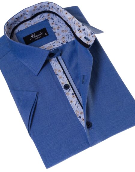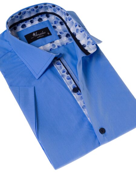 Blue Mens Short Sleeve Button up Shirts - Tailored Slim Fit Cotton Dress Shirts