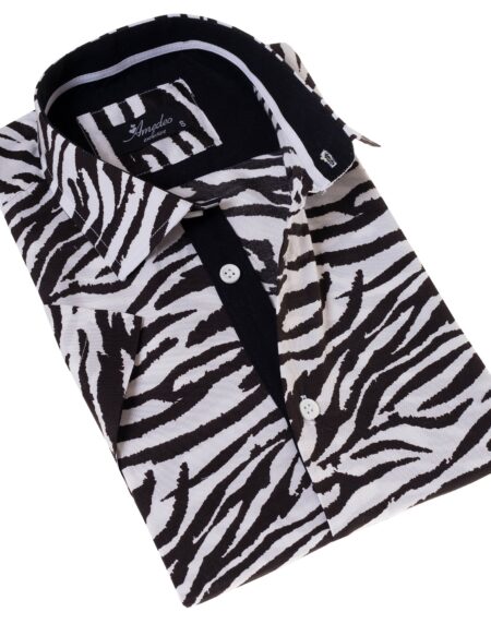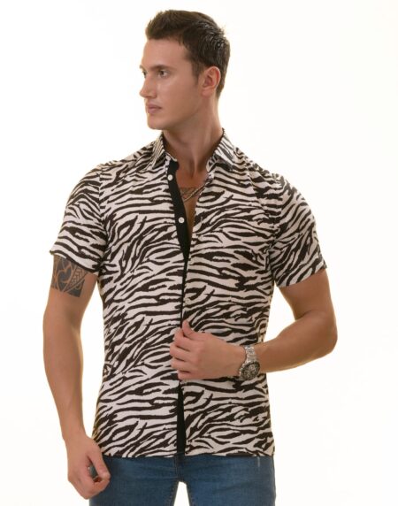 Black & White Zebra Paisley Slim Fit Short Sleeve Cotton Button-Up Shirt