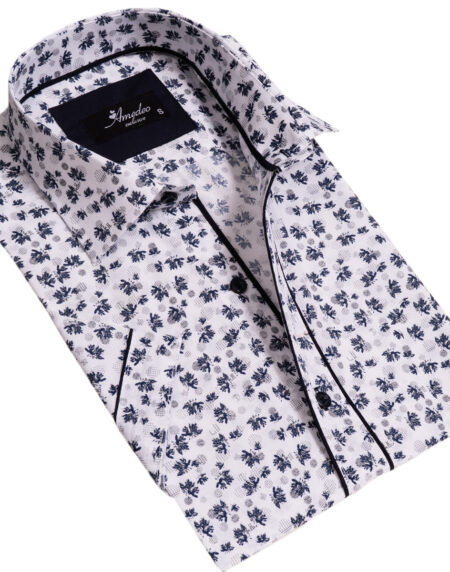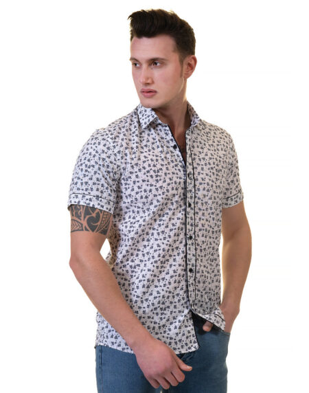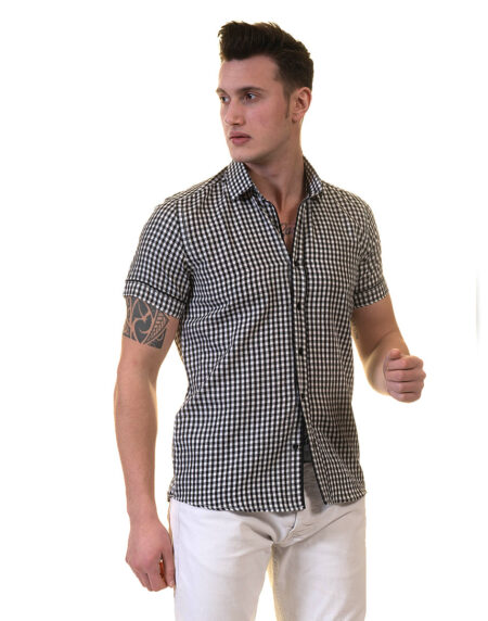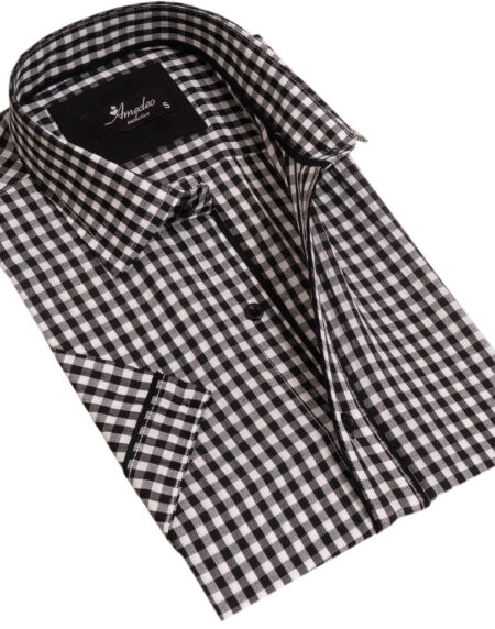 Black and White Mens Short Sleeve Button up Shirts - Tailored Slim Fit Cotton Dress Shirts