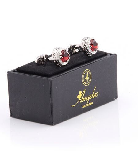 Silver & Red Stone Mens Stainless Steel Big Round Cufflinks for Shirt with Box - Hand Crafted