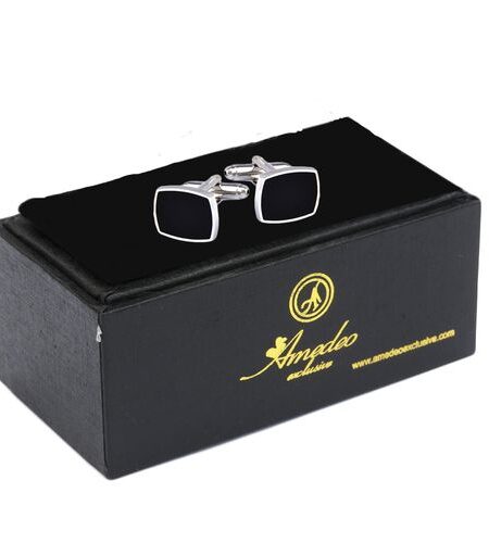 Silver Black Mens Stainless Steel Squares Cufflinks for Shirt with Box - Hand Crafted Perfect Gift