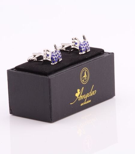 Silver & Blue Mens Stainless Steel Dogs Cufflinks for Shirt with Box - Hand Crafted Perfect Gift