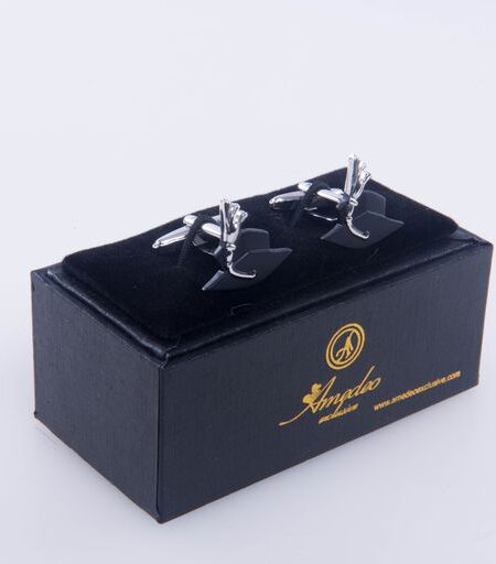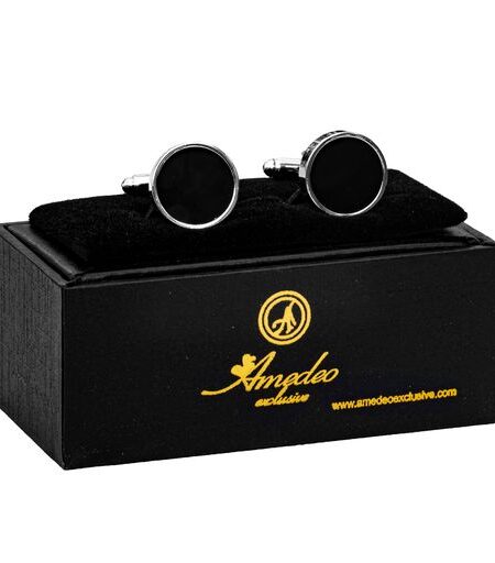 Silver + Black Mens Stainless Steel Graduation Cufflinks for Shirt with Box - Hand Crafted Perfect Gift