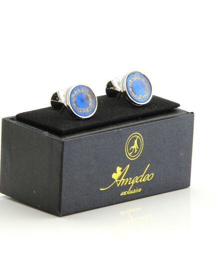 Topaz Blue With Stones Mens Stainless Steel Round Cufflinks for Shirt with Box - Hand Crafted