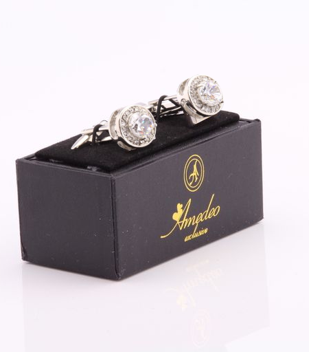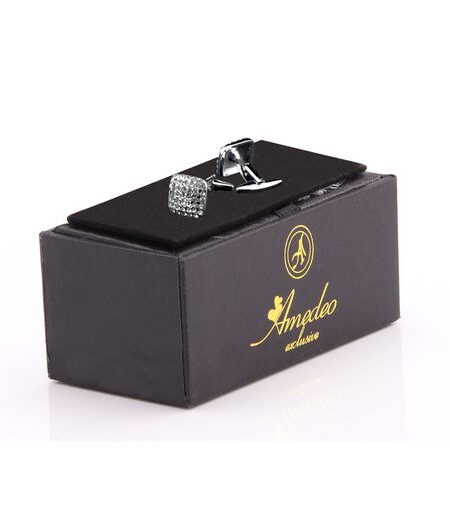 Silver Zirconia Mens Stainless Steel Square Cufflinks for Shirt with Box - Hand Crafted Perfect Gift