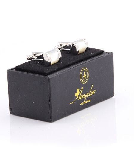 Silver with White Pearl Mens Stainless Steel Square Cufflinks for Shirt with Box - Hand Crafted
