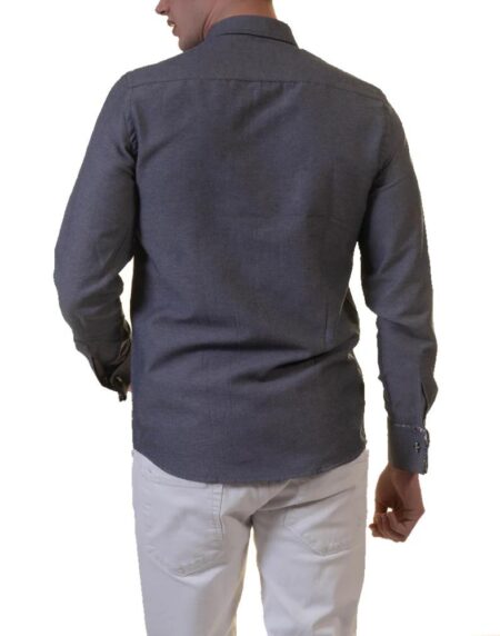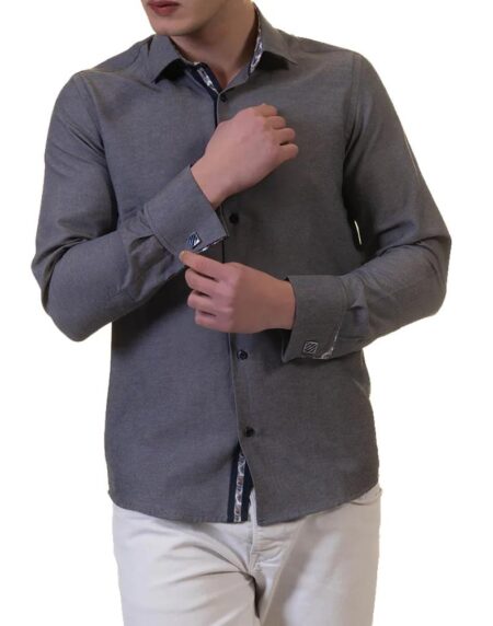 Gray French Double Cuff Shirt - Slim Fit Long-Sleeved Shirt (White Pattern Inside)