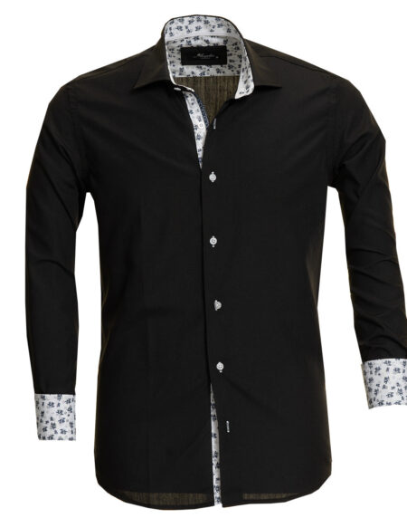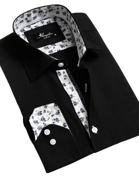 Black Mens Slim Fit Designer French Cuff Shirt - Tailored Cotton Shirts For Work And Casual