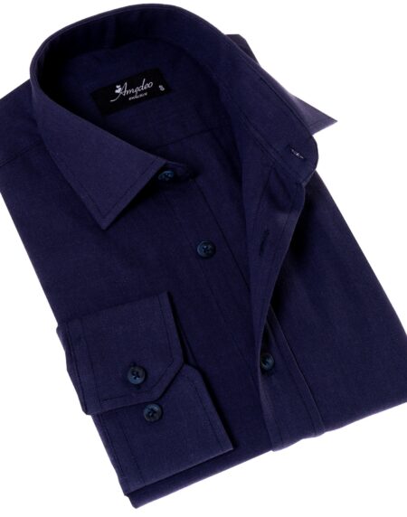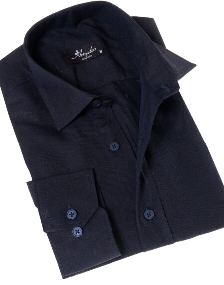 Navy Colored Luxury Men's Tailor Fit Button Up European Made Linen Shirts