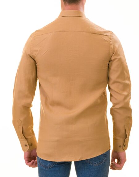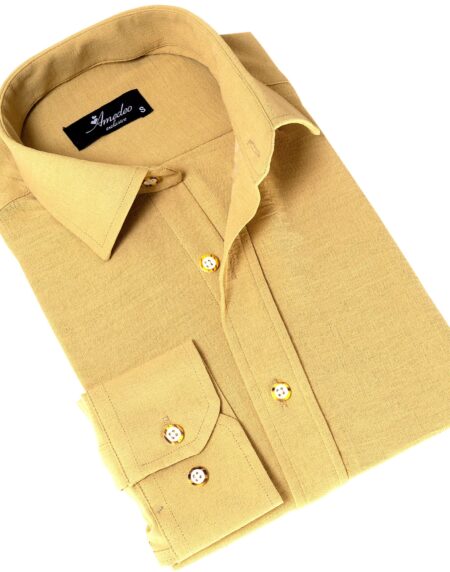 Mustard Luxury Men's European-Made Tailored Fit Linen Button-Up Shirt
