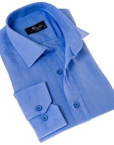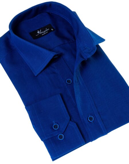 Men’s Royal Blue Linen Shirt - Luxury Tailor Fit European Made Button-Up