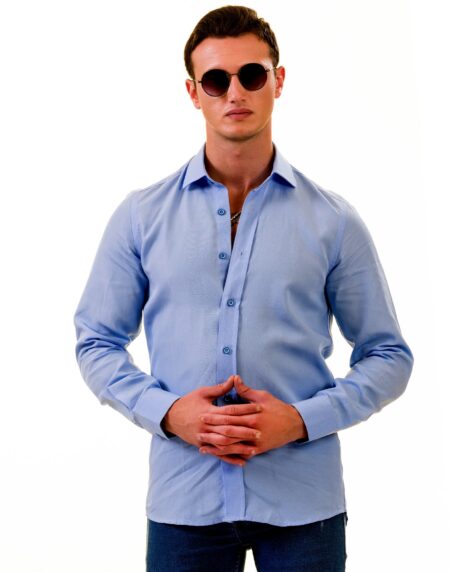 Men’s Sky Blue Linen Shirt - Luxury Tailor Fit European Made Button-Up