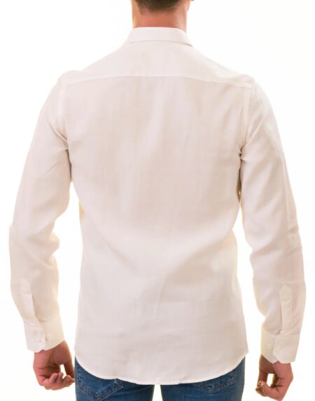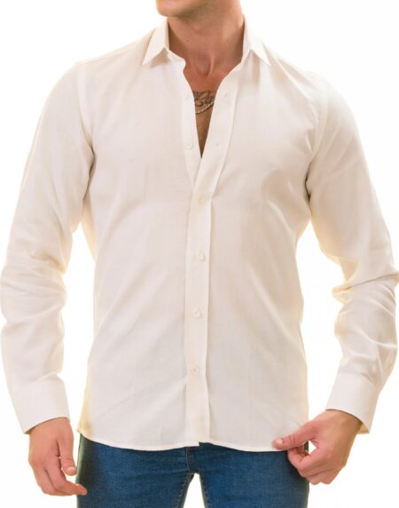 White Luxury Men's European-Made Tailored Fit Linen Button-Up Shirt