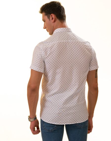 White with Black Printed Paisley Short Sleeve Button-Up Shirt - Slim Fit Cotton