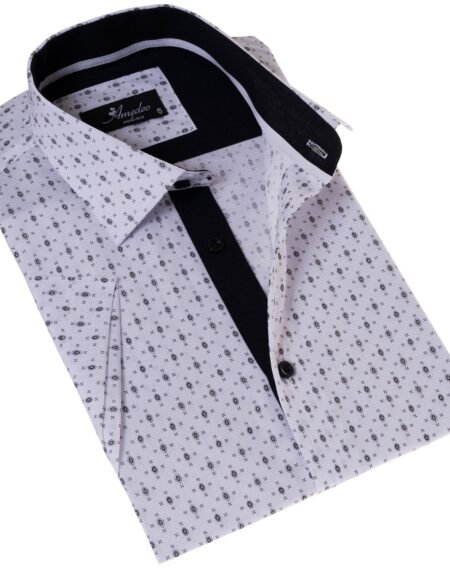 White with Black Mens Short Sleeve Button up Shirts - Tailored Slim Fit Cotton Dress Shirts