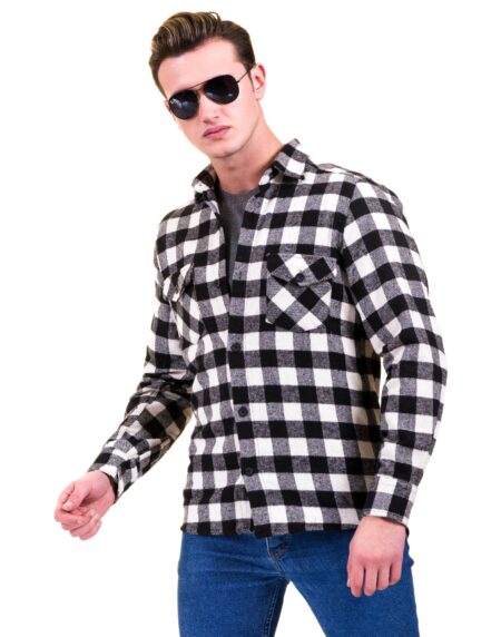 Black White Check Mens Slim Fit Designer French Cuff Shirt - tailored Cotton Shirts for Work and Casual Wear