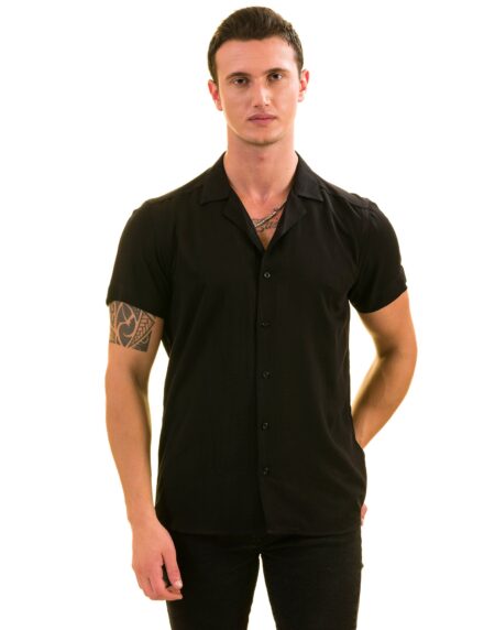 Black Solid Hawaiian Shirt for Men - European Designed Summer Style