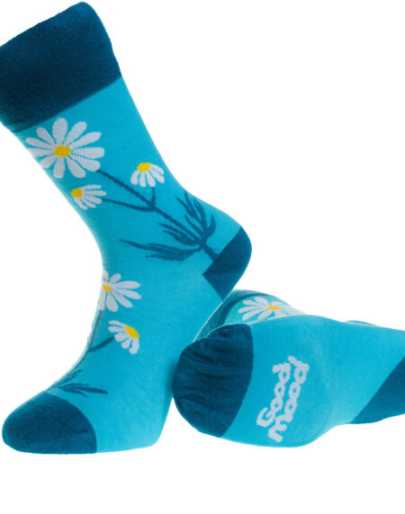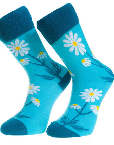 Blue With White Flowers-European Made - Egyptian Cotton Socks - Premium Cotton Fun socks with Soft Elastic