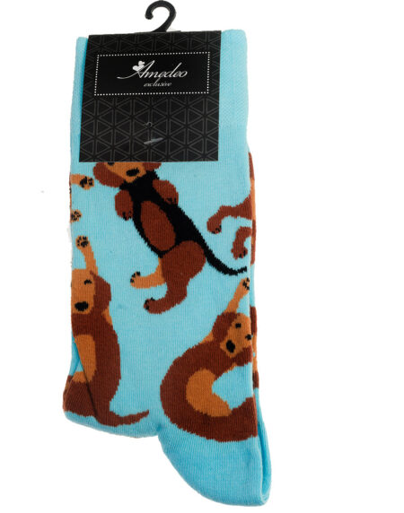 Blue Socks With Printed Dogs-European Made - Egyptian Cotton Socks - Premium Cotton Fun socks with Soft Elastic