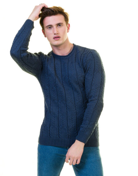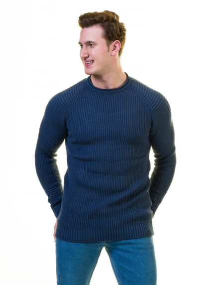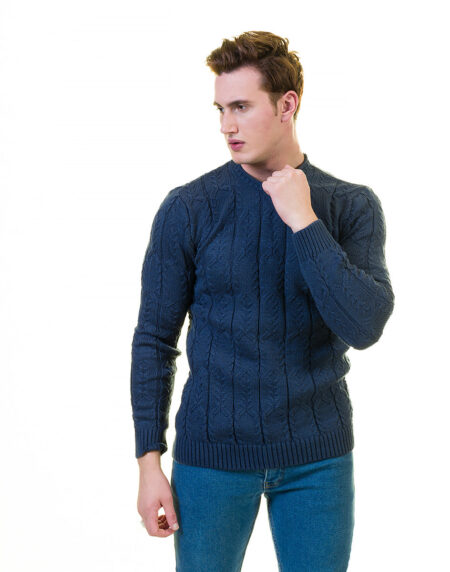 Blue Rounded Neck European Wool Luxury Zippered With Sweater Jacket Warm Winter Tailor Fit