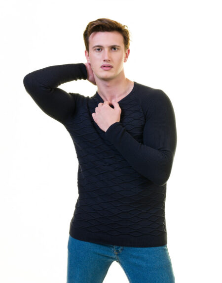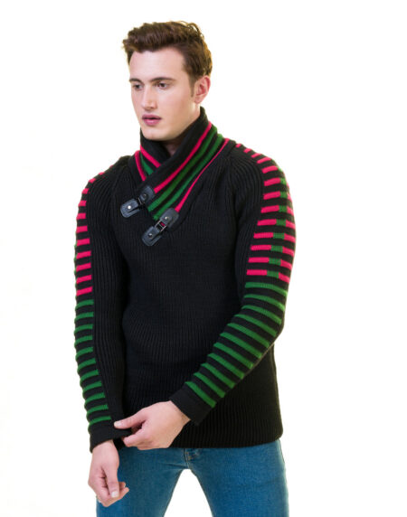 Black Rounded Neck European Wool Luxury Zippered With Sweater Jacket Warm Winter Tailor Fit