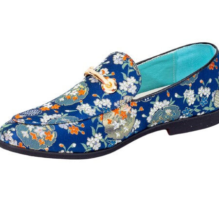 Premium Blue Golden Multicolor Loafers for men designer slip on casual / dress shoes – Luxury