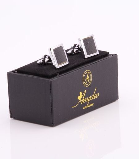 Mens Stainless Steel Silver + Black Carbon Fiber Square Cufflinks for Shirt with Box - Hand