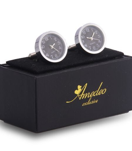 Men's Stainless Steel Silver & Black Functioning Watch Cufflinks Cufflinks with Box