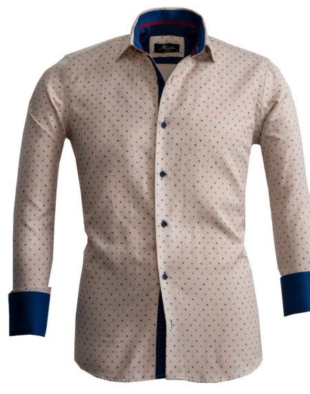 Cream Design Mens Slim Fit French Cuff Shirts with Cufflink Holes - Casual and Formal