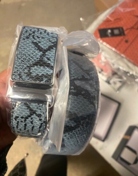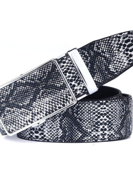 Men's Smart Ratchet No Holes Automatic Buckle Belt in Snake Skin - Blue Color