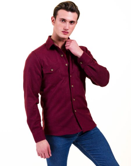 Solid Burgandy Mens Slim Fit Designer Dress Shirt - tailored Cotton Shirts for Work and Casual Wear