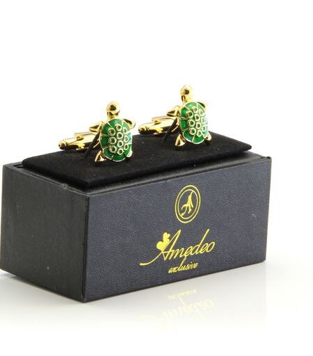 Green & Gold Mens Stainless Steel Turtles Cufflinks for Shirt with Box - Hand Crafted Perfect Gift