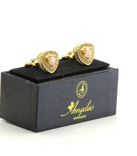 Gold with Orange Stone Mens Stainless Steel Triangle Cufflinks for Shirt with Box - Hand Crafted