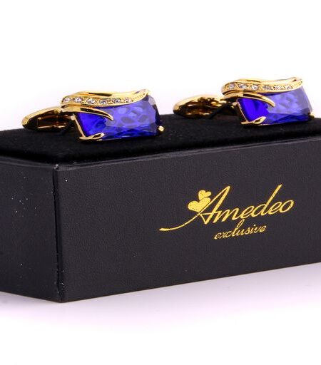 Gold Mens Stainless Steel Rectangle with Zirconia's Cufflinks for Shirt with Box - Hand Crafted
