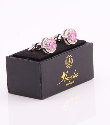 Pink Round Big Stone Mens Stainless Steel Rectangular Cufflinks for Shirt with Box - Hand Crafted