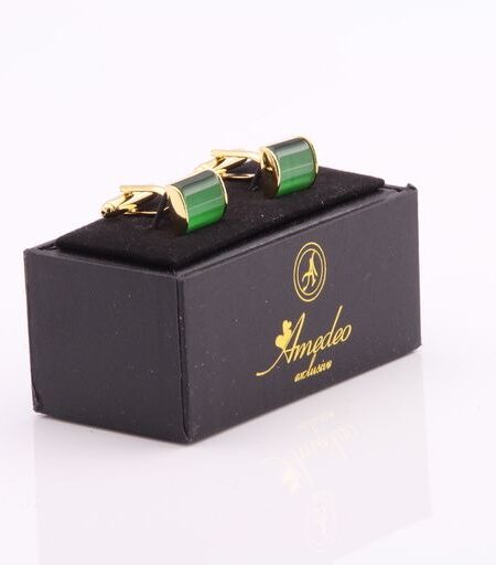 Gold & Green Mens Stainless Steel Squares Cufflinks for Shirt with Box - Hand Crafted Perfect Gift
