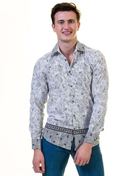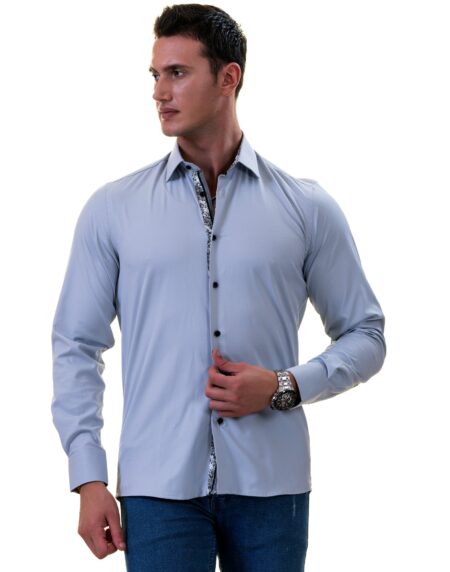 Gray Inside Floral Men's Slim Fit Designer Dress Shirt - Tailored Cotton