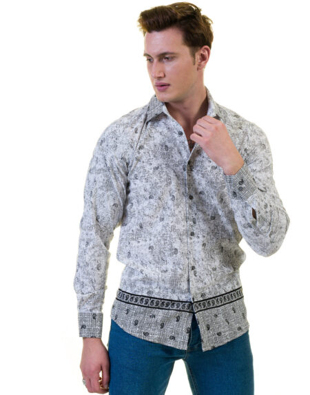 Grey and Black Doted Mens Slim Fit Designer Dress Shirt - tailored Cotton Shirts for Work and Casual Wear