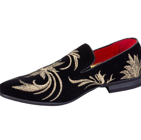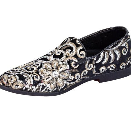 Premium Black And Golden Flowers Loafers for men designer slip on casual / dress shoes – Luxury