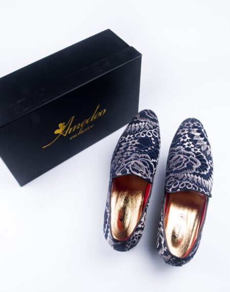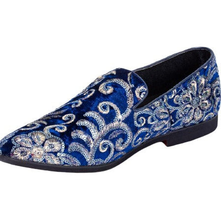 Premium Blue Golden Multicolor Loafers for men designer slip on casual / dress shoes – Luxury