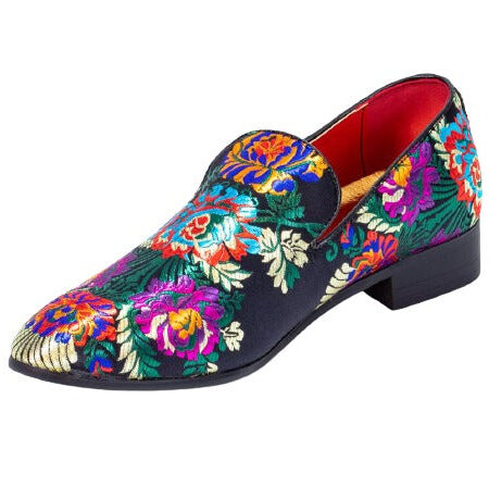 Premium Black Multicolor Floral Loafers for men designer slip on casual / dress shoes – Luxury