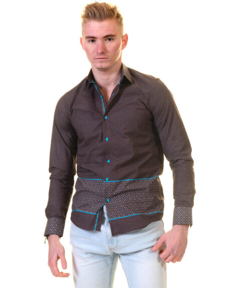 Chocolate Brown and Turqouise Blue Mens Slim Fit Designer Dress Shirt - tailored Cotton Shirts for Work and Casual Wear