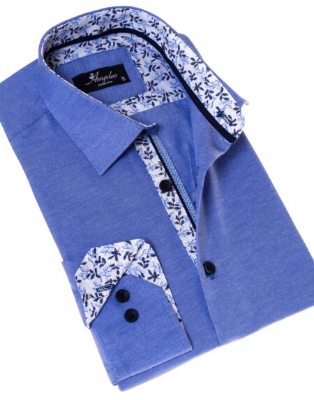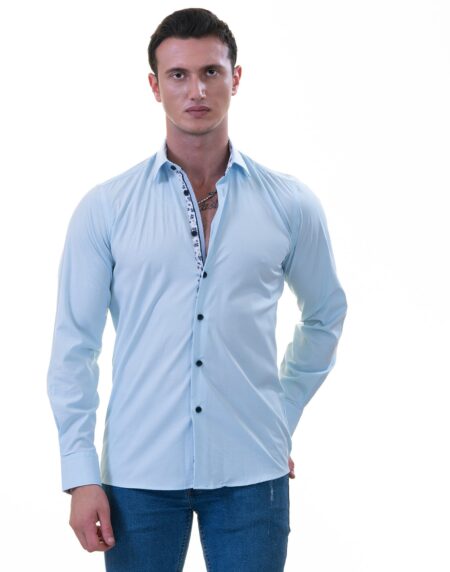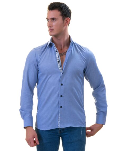Blue Mens Slim Fit Designer Dress Shirt - tailored Cotton Shirts for Work and Casual Wear