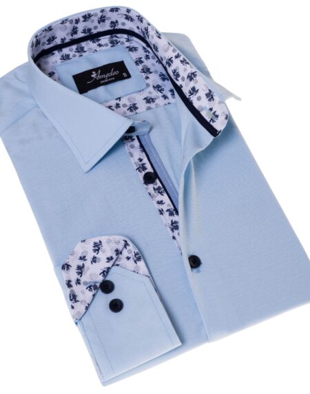 Blue Inside Floral Men's Slim Fit Designer French Cuff Shirt - Tailored Cotton