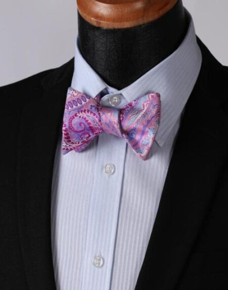 Purple Blue Paisley Mens Silk Self tie Bow Tie with Pocket Squares Set