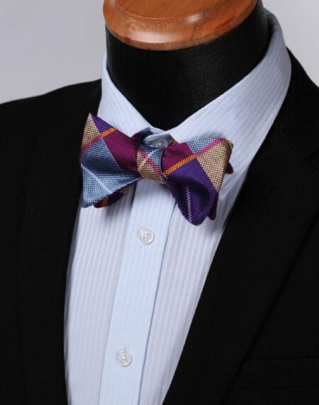 Burgundy Gray check Mens Silk Self tie Bow Tie with Pocket Squares Set