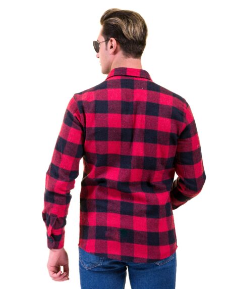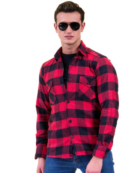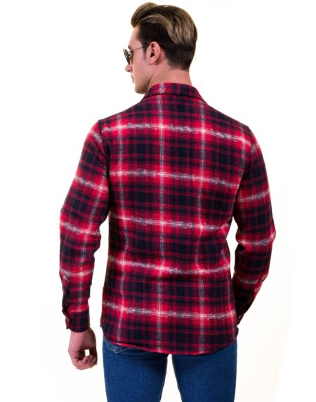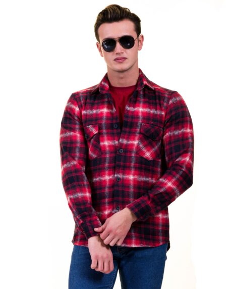 Red Black Check Mens Slim Fit Designer Dress Shirt - tailored Cotton Shirts for Work and Casual Wear
