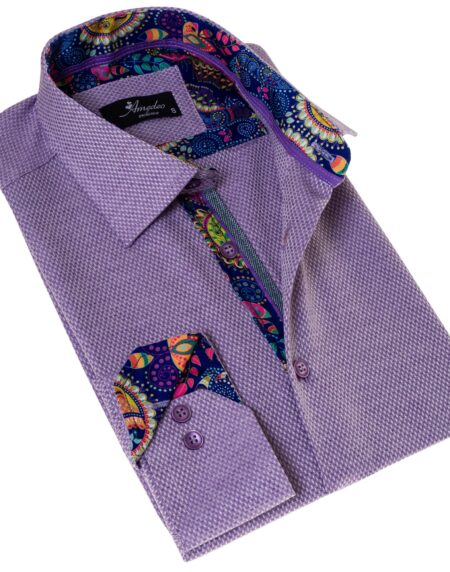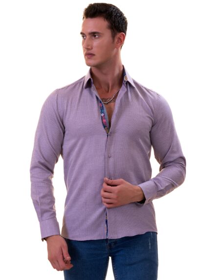 Purple Jacquard Men's Slim Fit Designer Dress Shirt - Tailored Cotton Shirt