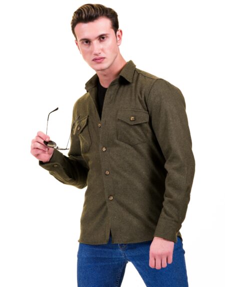 Solid Olive Green Mens Slim Fit Designer Dress Shirt - tailored Cotton Shirts for Work and Casual Wear